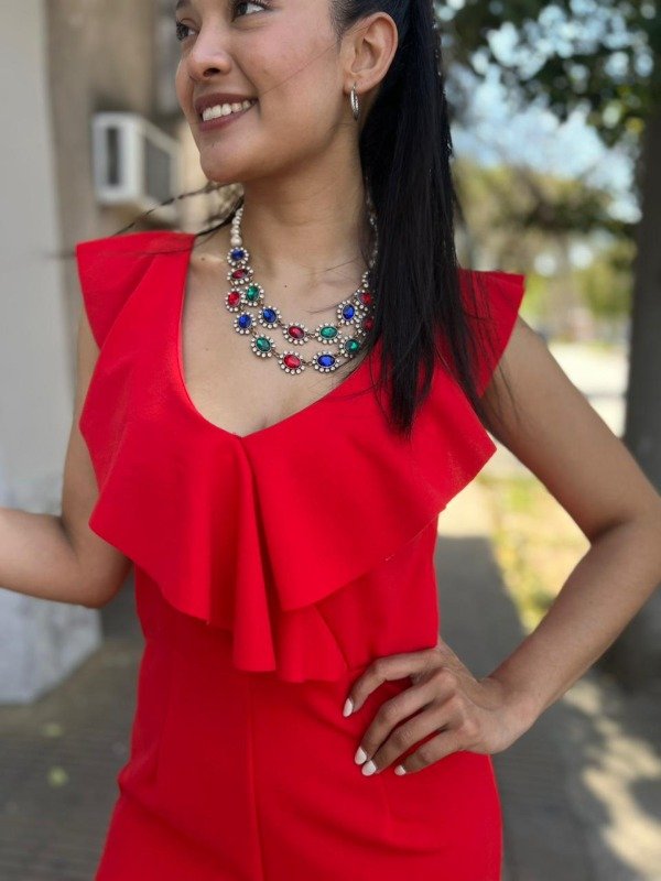 Enamórate del ENTERIZO PASSIONE, una prenda que irradia confianza, elegancia y un toque de misterio. Este mono, en un rojo vibrante, está diseñado para la mujer que no teme destacar y capturar todas las miradas.