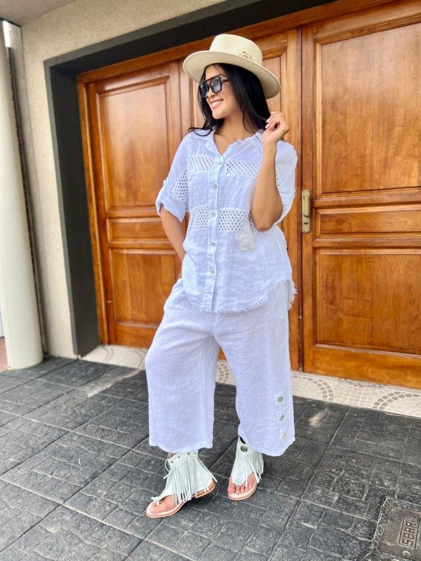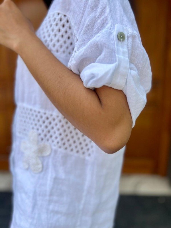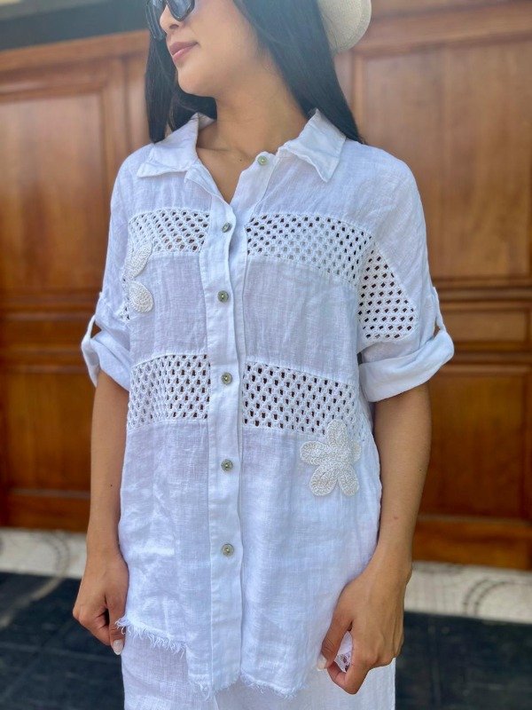 Déjate llevar por la dulzura y el romanticismo de RICAMO D'AMORE, una camisa italiana que celebra la feminidad artesanal y la ligereza del verano. Esta prenda no es solo moda, es una caricia de aire fresco.