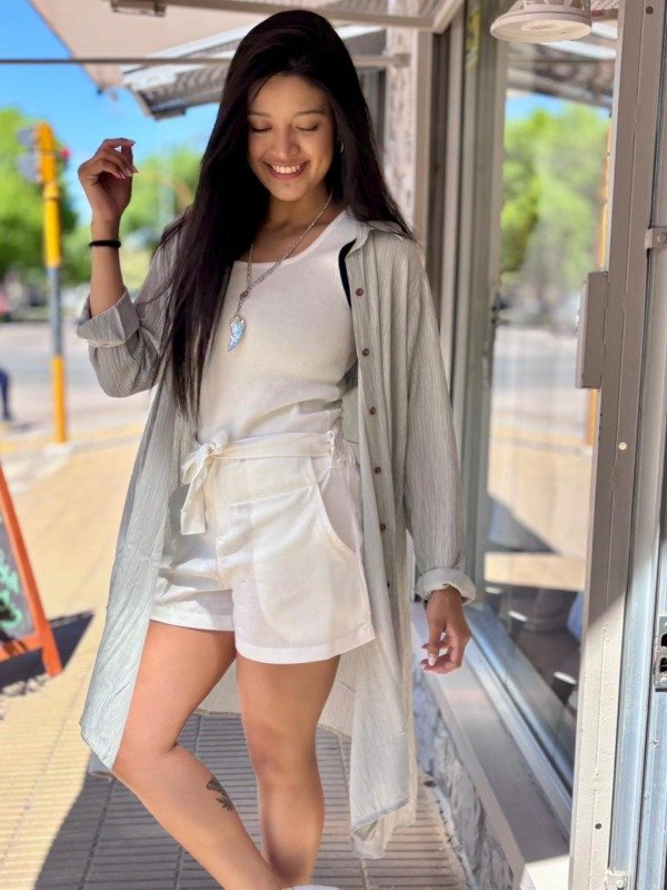 Combínalo con tops de punto, blusas sedosas o camisas oversize (como el look de la foto) para crear outfits que te transporten directamente a la costa. Desde un café hasta un paseo romántico al atardecer.