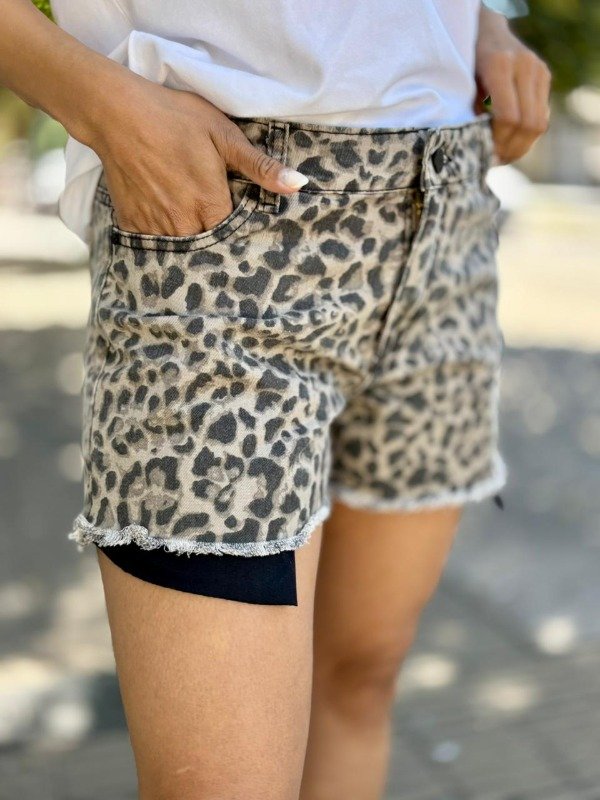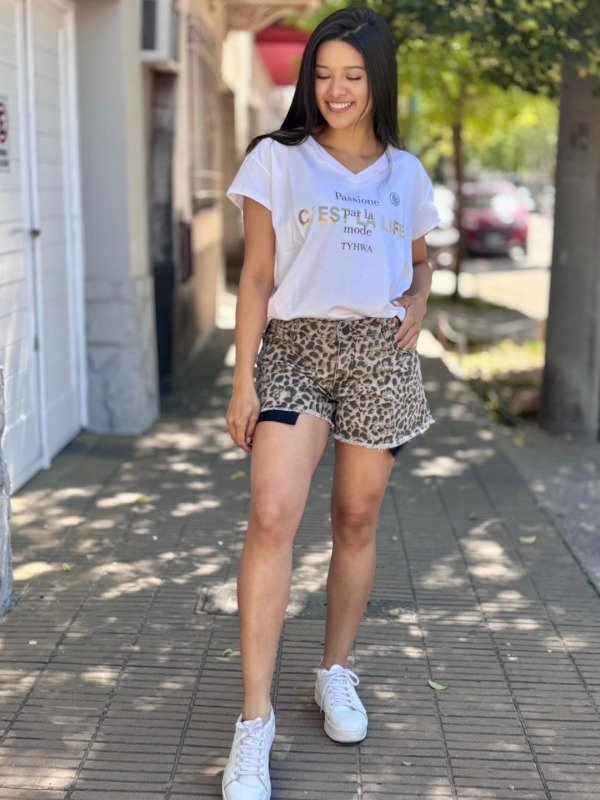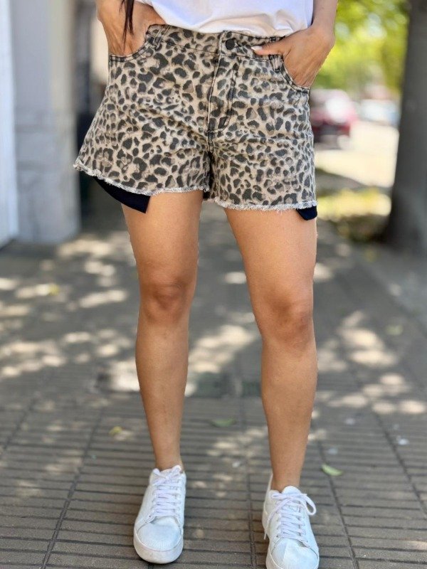 Con un estampado animal print en tonos tierra y grafito, este denim se reinventa, ofreciendo un aire salvaje pero increíblemente chic. El toque de bajo deshilachado le otorga esa textura raw y desenfadada, perfecta para el verano.