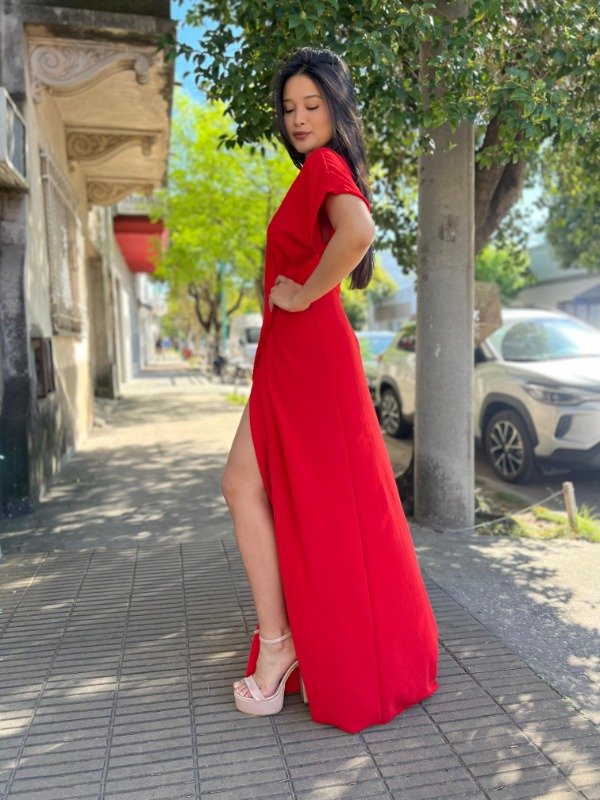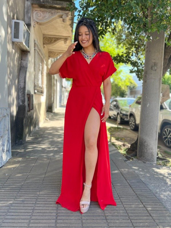Prepárate para ser el centro de todas las miradas con el Vestido MAXI "Diosa Hollywood". Esta pieza de ensueño te ofrece una elegancia arrolladora con un toque moderno y audaz. Confeccionado en una tela de gasa con textura suave y excelente caída, presenta un favorecedor escote cruzado en V y mangas cortas tipo mariposa. La cintura entallada y la falda fluida extra-larga culminan en una espectacular abertura lateral profunda que alarga visualmente la figura y permite un movimiento sensual.